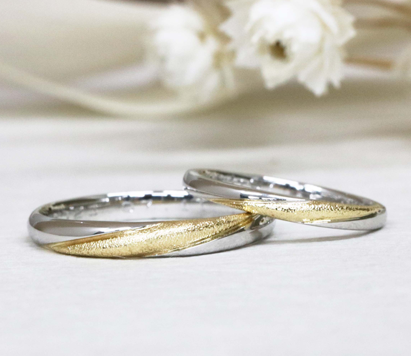 一部に違う素材を入れる事で、よりオリジナリティーのある特別な指輪となります。素材を選べるので、お2人だけの組み合わせをお楽しみ頂けます。