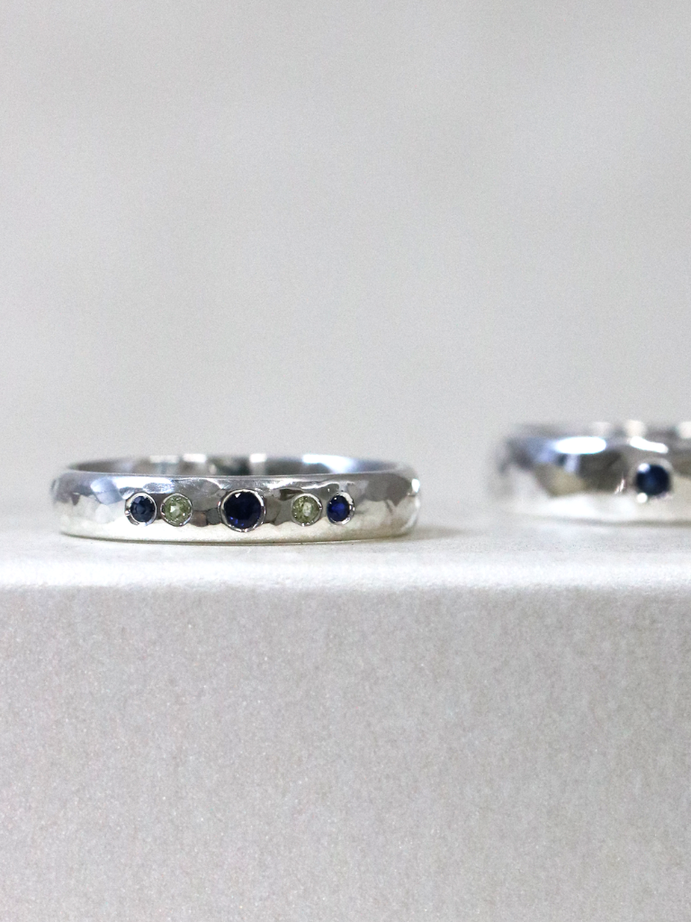 お二人の誕生石のペリドットとサファイアを入れられました✨