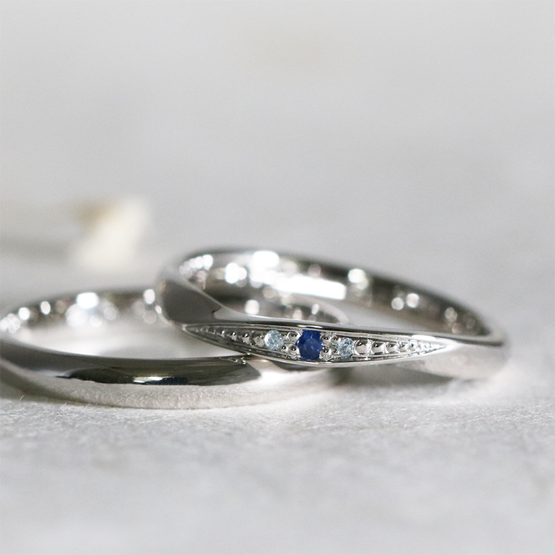ご制作頂いた指輪にお互いの誕生石やダイヤモンドを添えて、より華やかで特別なリングに仕上がります。4つの粒で留める【グリ留】/シンプルに伏せこむ【皿留】/内側に入れる【シークレットストーン】など※お預かり期間 1週間~